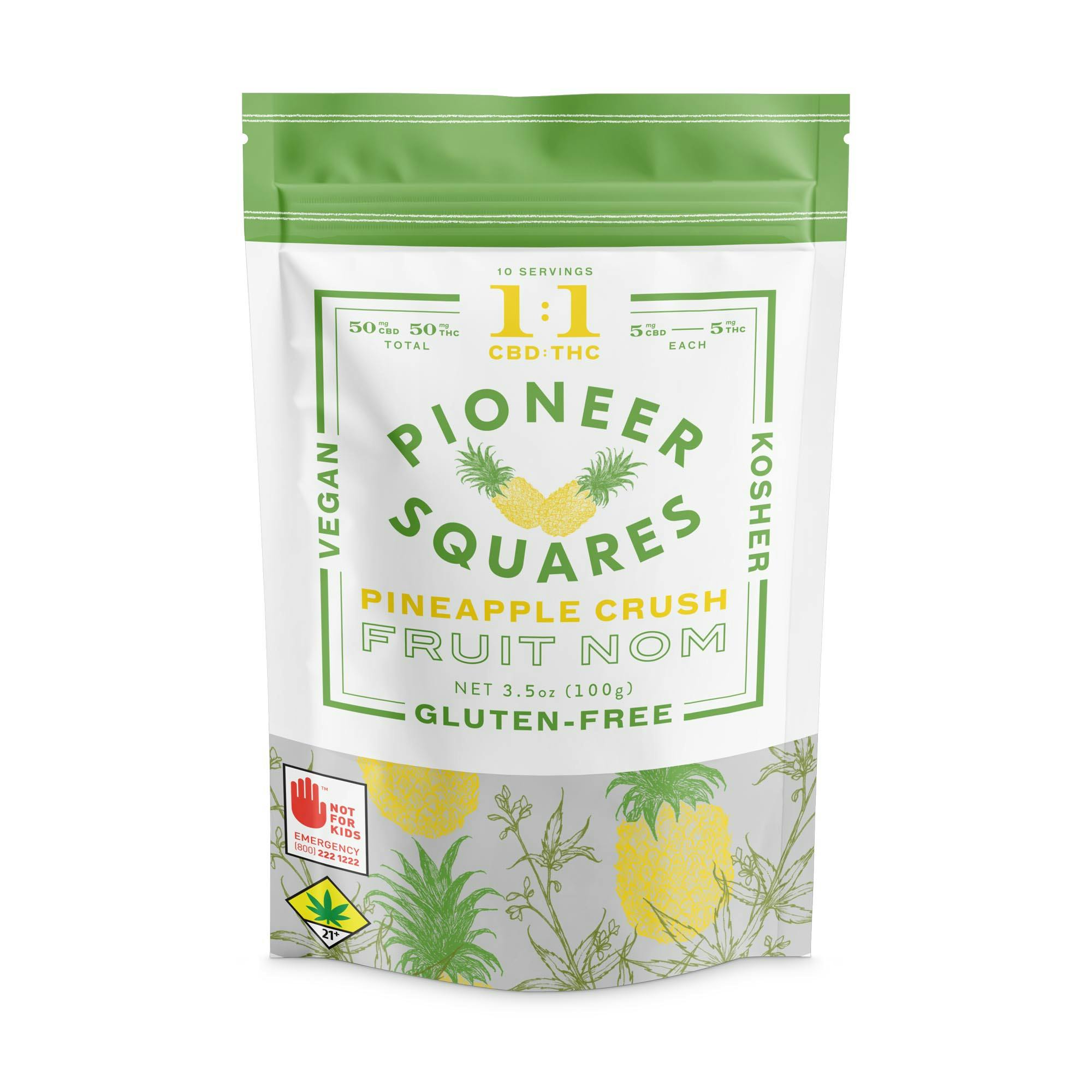Pioneer Squares | Pineapple Crush CBD 1:1 10pk 100mg