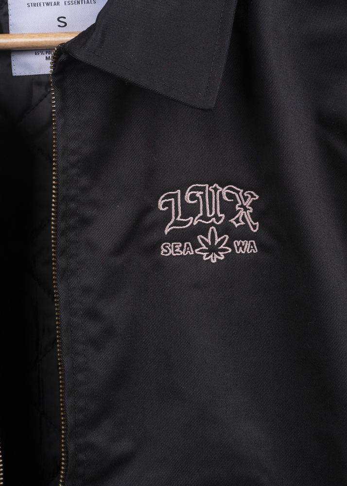 Embroidered locally at Midnight Supply on a rugged, insulated mechanic jacket.